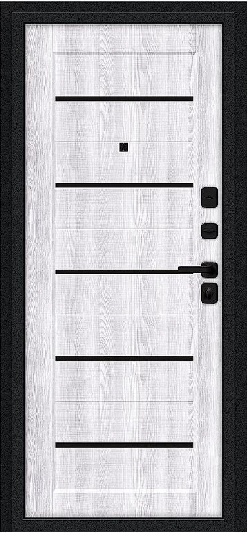 Надежная входная Дверь Браво Борн/SBlack Букле черное/Riviera Ice премиум класса по цене 34 475 руб. Большая толщина стали защитит от проникновения в ваш дом, квартиру или коттедж. Используется очень качественная фурнитура: замки, цилиндры, ручки, защелки. Покрытие и отделка двери изготовлено под внимательным контролем производителя. Дверь имеет долгий срок службы и гарантию.