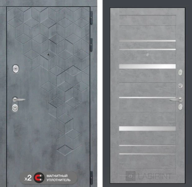 Дизайнерская входная Дверь Бетон класса Люкс с несколькими листами стали, звукоизоляцией и теплоизоляцией. Утепленный короб и полотно защитят от сквозняков и шумов. Модель не только надежная, комфортная, защищенная и высочайшего качества, но и очень красивая! Будет отлично сочетаться с интерьером дома, квартиры или офиса. Сейчас действует выгодное предложение по цене: 56 575 руб.